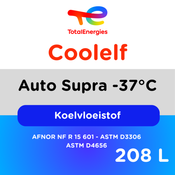 COOLELF AUTO SUPRA -37°C is het organische premium product van de koelvloeistoffen van TOTAL. Het is een very long life” koelvloeistof op basis van mono-ethyleenglycol en organische corrosie-inhibitoren. Ze wordt aanbevolen voor alle verbrandingsmotoren van bestelwagens, vrachtwagens, machines voor openbare werken en landbouwtractoren. Deze koelvloeistof garandeert een maximale bescherming tegen vorst tot -37°C. Ze kan probleemloos gebruikt worden in motoren in gietijzer en in aluminium en in alle koelsystemen bestaande uit radiatoren in aluminium of koperlegeringen.