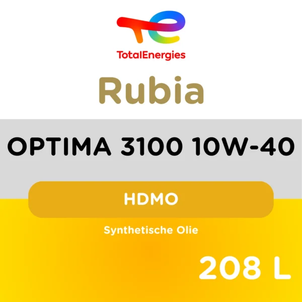 Rubia Optima 3100 10W-40 is aangepast aan Euro VI en eerdere Mercedes-Benz, DAF en sommige Scania-motoren. Het is ook geschikt voor de meeste Euro V-voertuigfabrikanten.