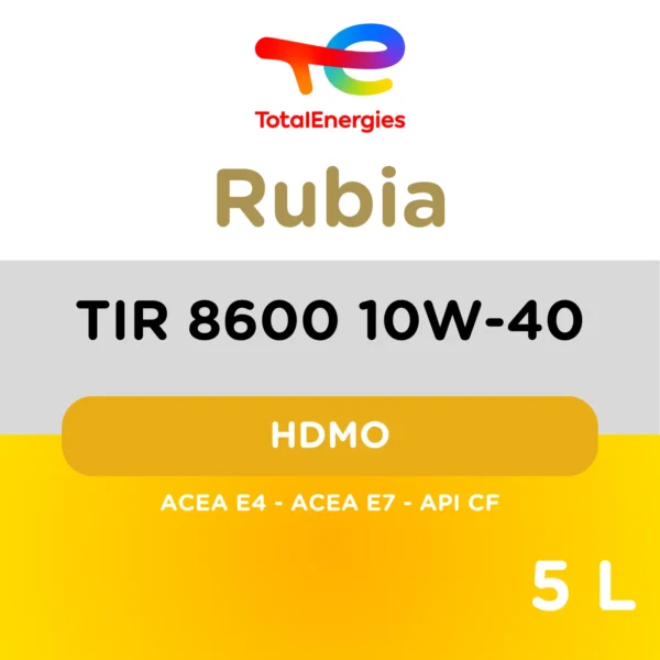 TotalEnergies RUBIA TIR 8600 10W-40 is een syntheseolie voor zeer hoge prestaties voor dieselmotoren. De olie is gehomologeerd door SCANIA voor alle motoren Euro 6 en is ook afgestemd op de motoren Euro 5, waaronder die van IVECO. ​